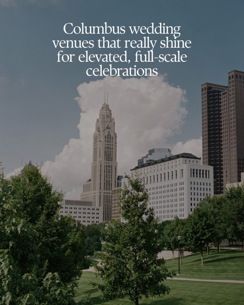 Below, we’re sharing Columbus wedding venues that truly shine when production, hospitality, and scale matter. Many of these align best with weddings in the $150K range, depending on guest count and priorities, and all of them allow planners to do what they do best: create seamless, high-touch experiences.